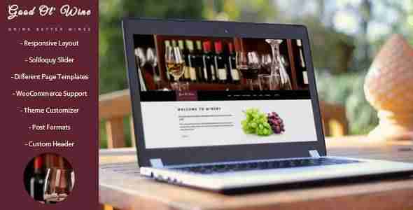 Good Ol`Wine es un theme responsive para WordPress que basa su diseño principalmente en fotografías que el propio administrador sube a través del backoffice de WordPress. Cuenta con soporte para Vinos, Galería de imágenes, Blog, Eventos y Tienda Online con WooCommerce. Su diseño tiene una amplitud que siempre gusta al visitante. No cuenta con espacios cerrados y sus colores y tipografías son muy, pero que muy elegantes. Su precio es de 59$